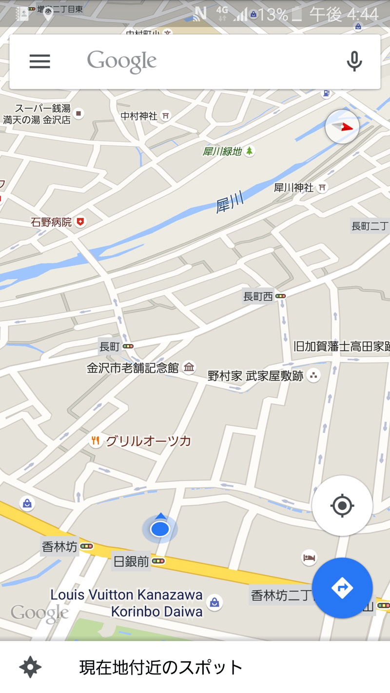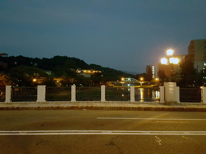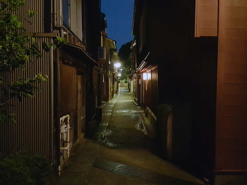 この1日で、Galaxy S6 edgeのカメラを使って相当な枚数の写真を撮ってきたが、まだ試せていないのが夜の撮影だ。Galaxy S6 edgeはメインカメラ、サブカメラともにF値1.9という明るいレンズを搭載しているため、暗い場所でも明るくきれいに撮影できるという。そこで、夜の金沢を散策して写真を撮ってみることにした。