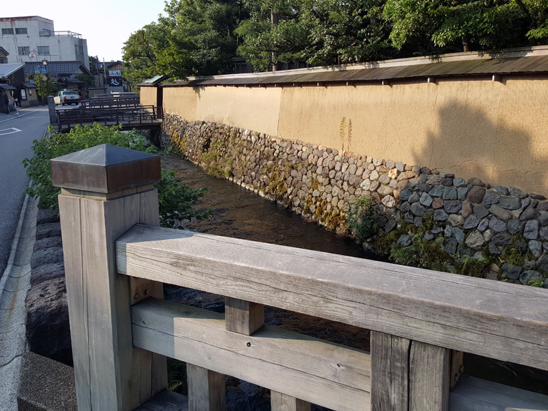 再びバスに乗り、香林坊で下車。香林坊には「109」もあり、金沢のトレンド発信地とのことだが、今回は特に目もくれず、マップを確認しながら長町武家屋敷跡を目指す。長町武家屋敷跡は、いくつかの武家屋敷跡が並び、用水が流れていたりと、江戸時代の雰囲気を味わえるエリア。兼六園や金沢城公園と並んで、外国人観光客には人気のエリアらしく、街並みにカメラを向ける外国人も多く見られた。