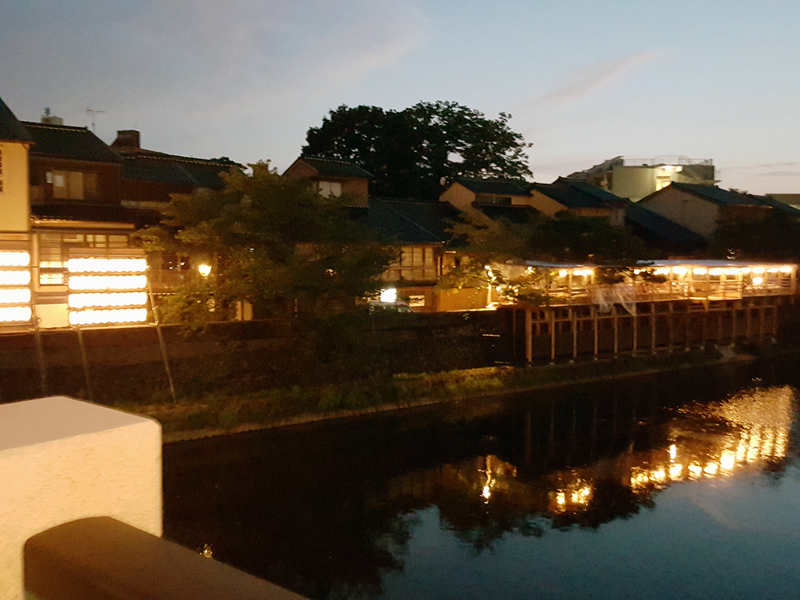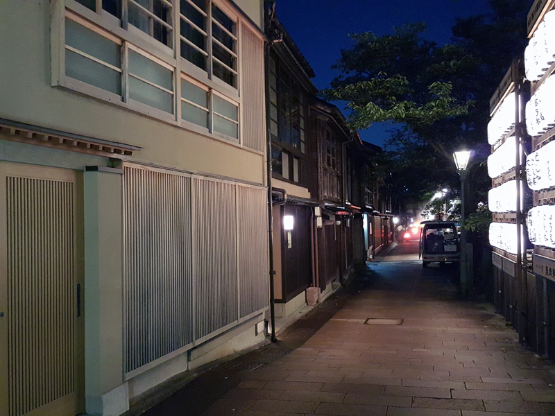 バスに乗って向かったのは、主計町茶屋街。川沿いに昔ながらの料亭や茶屋が並び、夜になると雰囲気は抜群だ。さっそく、Galaxy S6 edgeで茶屋街周辺を撮影してみたが、どれも明るくきれいな写真に仕上がった。