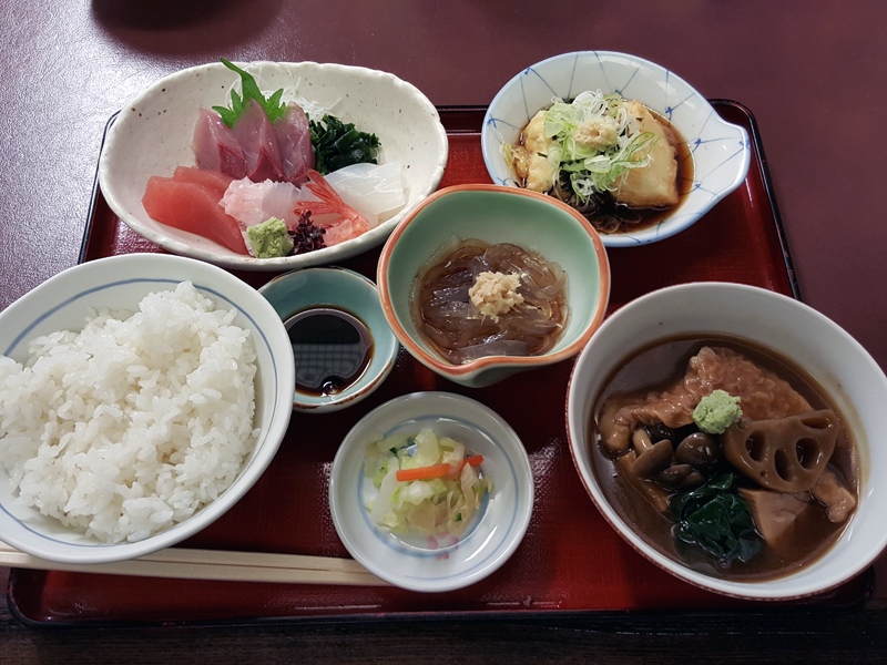 すでに閉店してしまっている店も多かったが、金沢駅近くの居酒屋にどうにか入ることができ、そこで刺身定食と金沢の郷土料理、治部煮を注文。大満足で1日目の夕食を終えた。