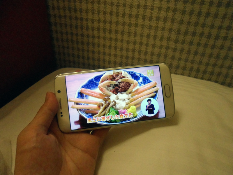 ホテルの部屋に戻ったら、ベッドに寝転びながらYouTubeで金沢の魅力を再確認する。Galaxy S6 edgeは、左右両端がカーブしたデュアルエッジスクリーンを搭載しており、YouTubeなどで動画を再生すると、映像が浮かび上がっているように感じられる。動画を眺め、この1日のことを考えているうちに、いつの間にか眠りについていた。