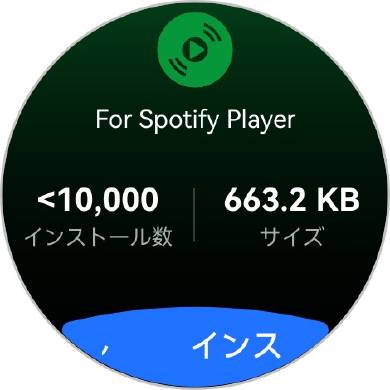 「For Spotify Player」をインストールして起動 Spotifyのユーザーアカウントと連携すればウォッチ上で直接音楽再生できる