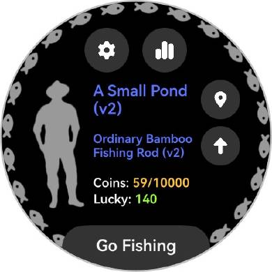しばらくすると魚が釣れる コインを消費して釣り竿をアップグレード 「Lucky」を使えばすぐに魚が釣れたりする