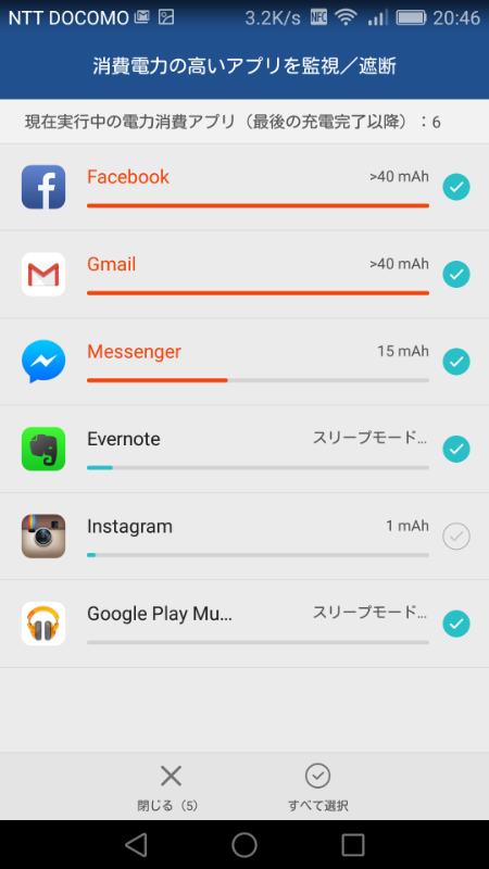 通知パネルを通じて電力消費の高いアプリをチェックすることができる