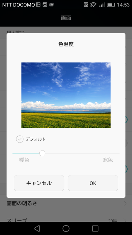 色温度は、[設定]→[画面]→[色温度]で変更できる