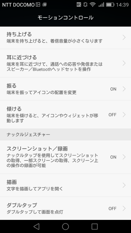 モーションコントロールの設定。ジェスチャーで起動するアプリは自由に設定できる