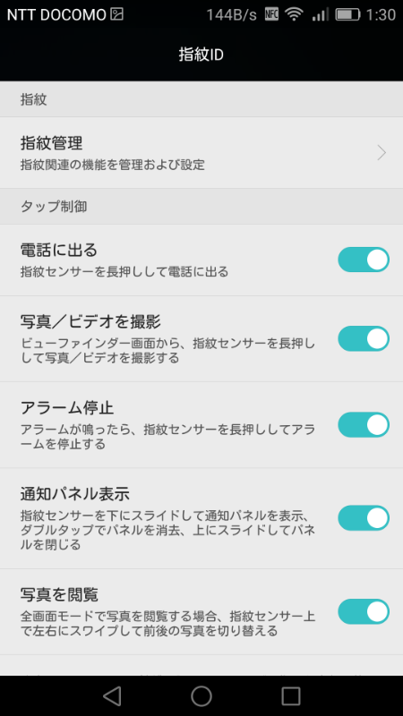 「指紋センサー」を使うと、ロック解除以外にも5種類の操作が可能になる
