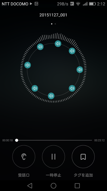 「会議」モードで録音されたファイルを再生した状態。声がした方向を表示している